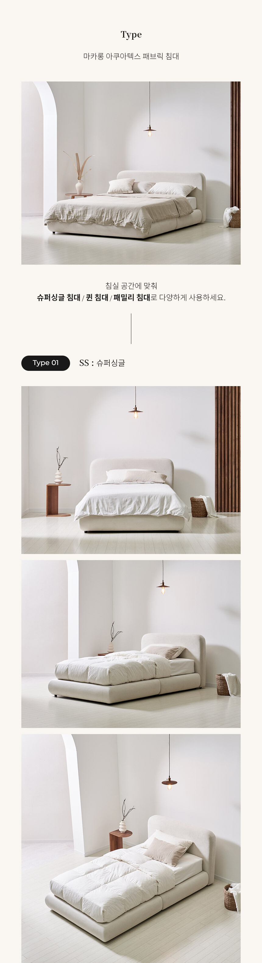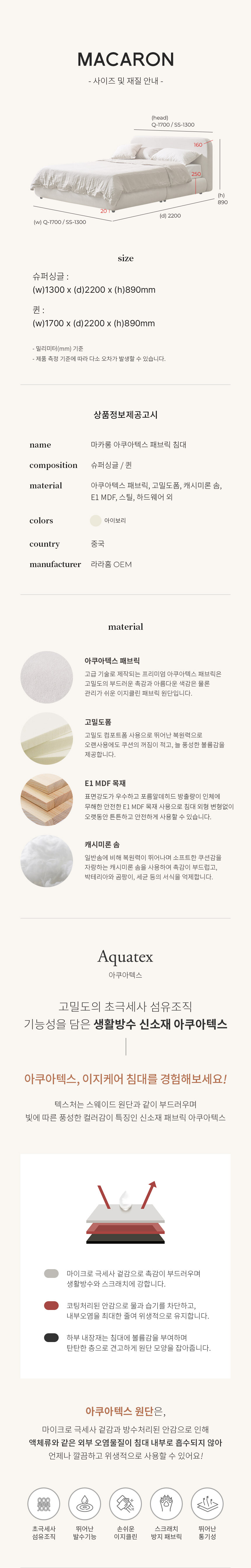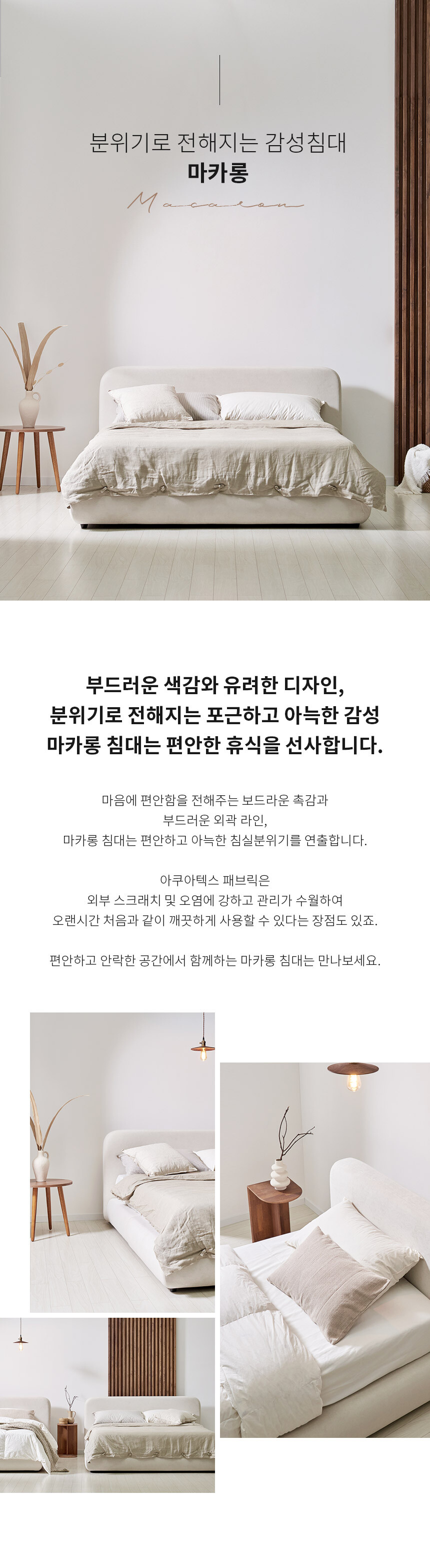 마카롱 아쿠아텍스 패브릭 평상형 호텔식 침대 프레임 SS / Q