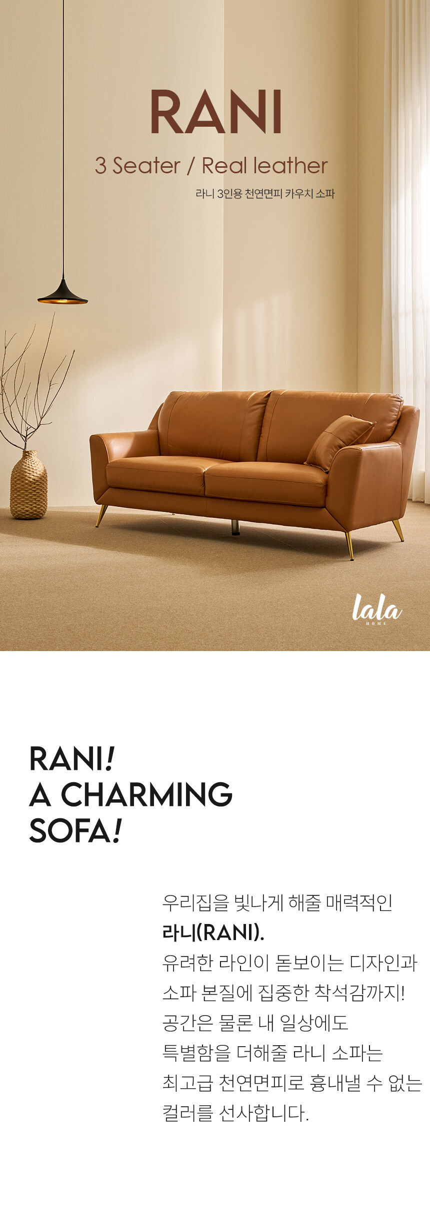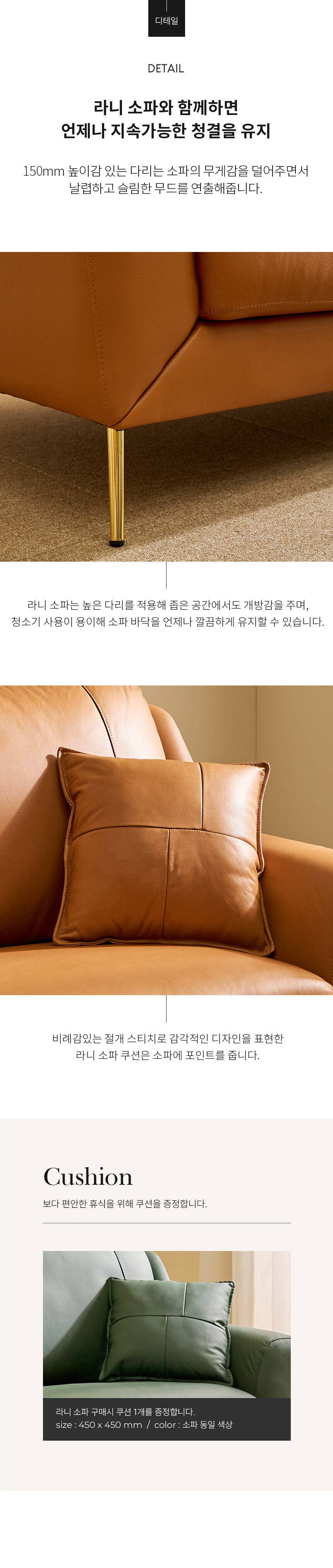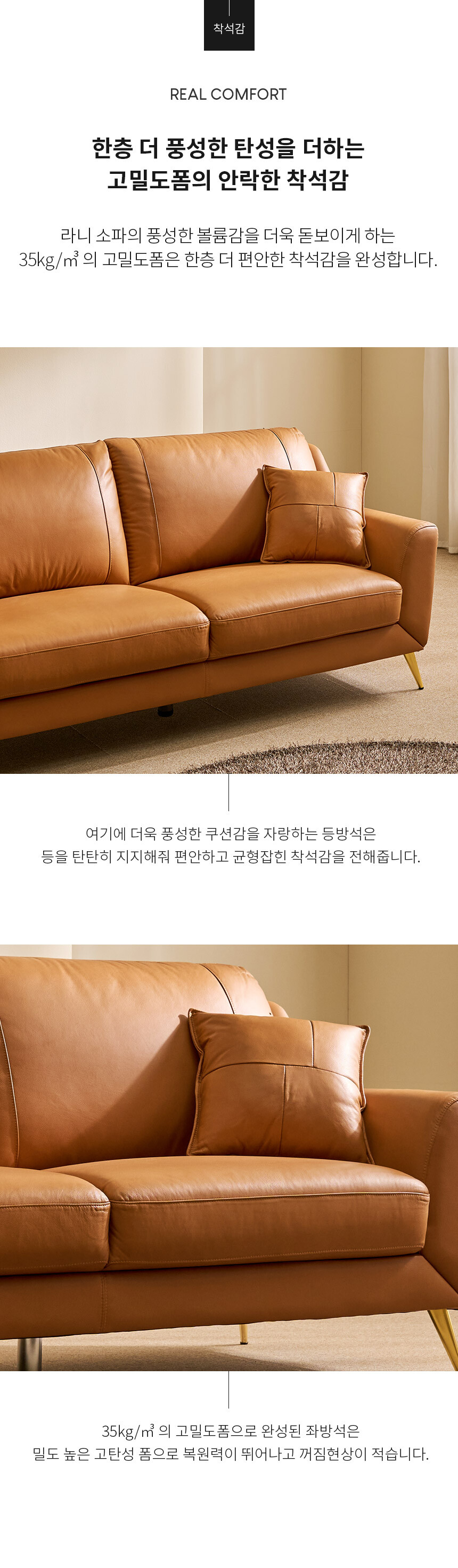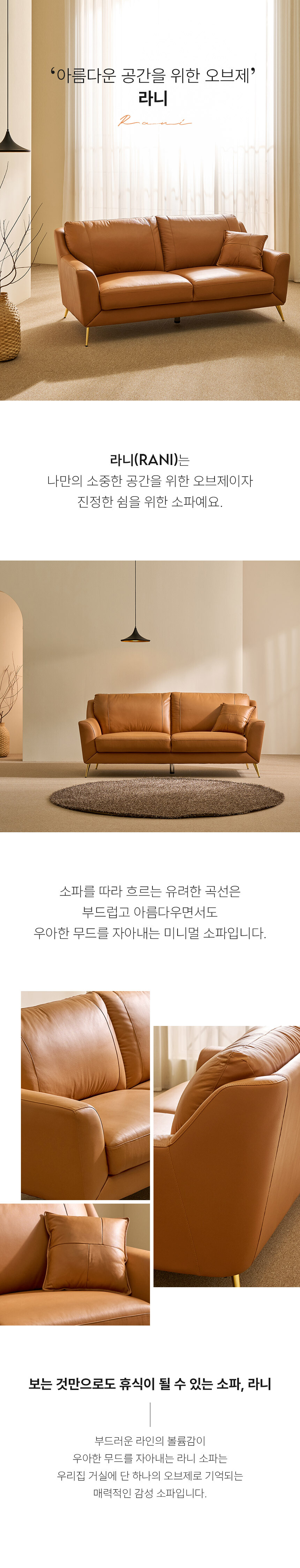 라니 3인용 천연면피 오렌지 카키 소가죽 가죽 소파