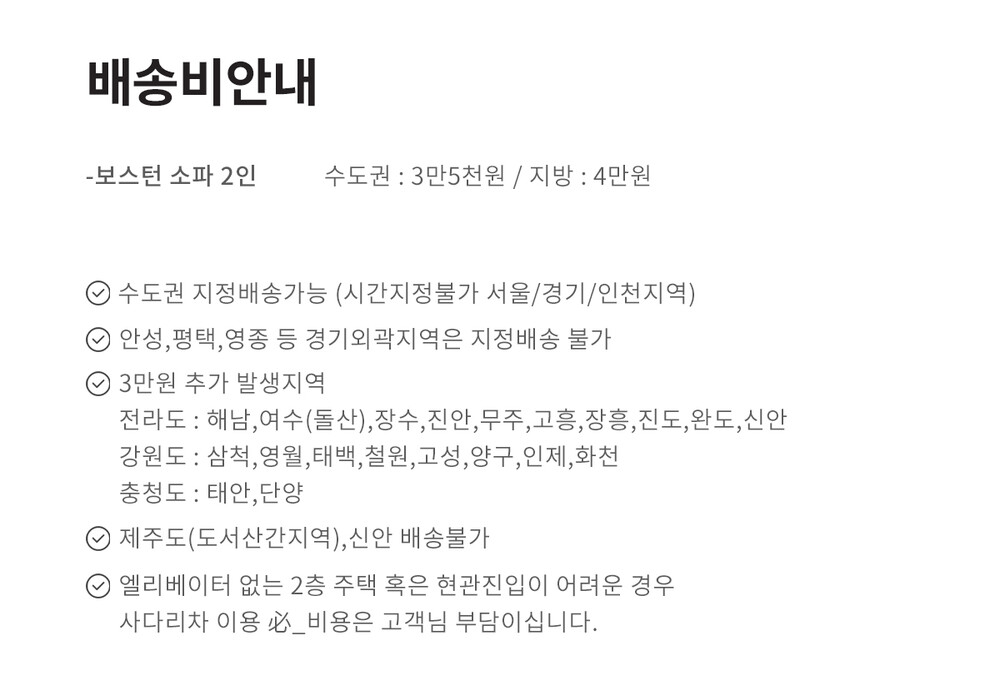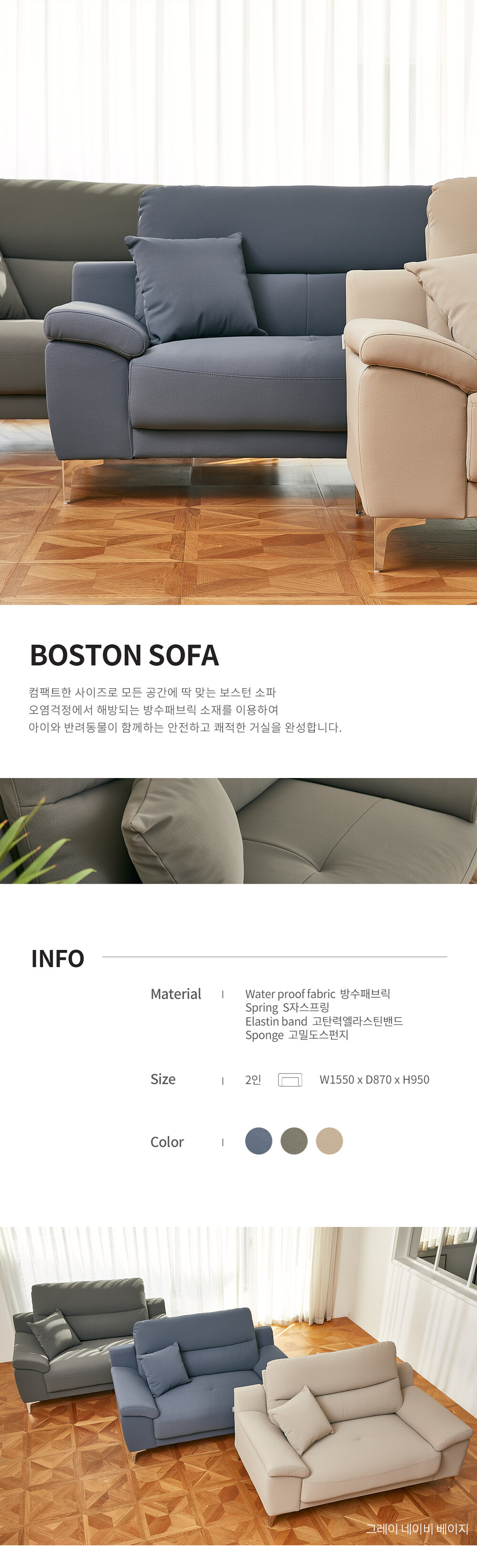 보스턴 2인용 쇼파 패브릭 방수 아쿠아 이지클린 신소재