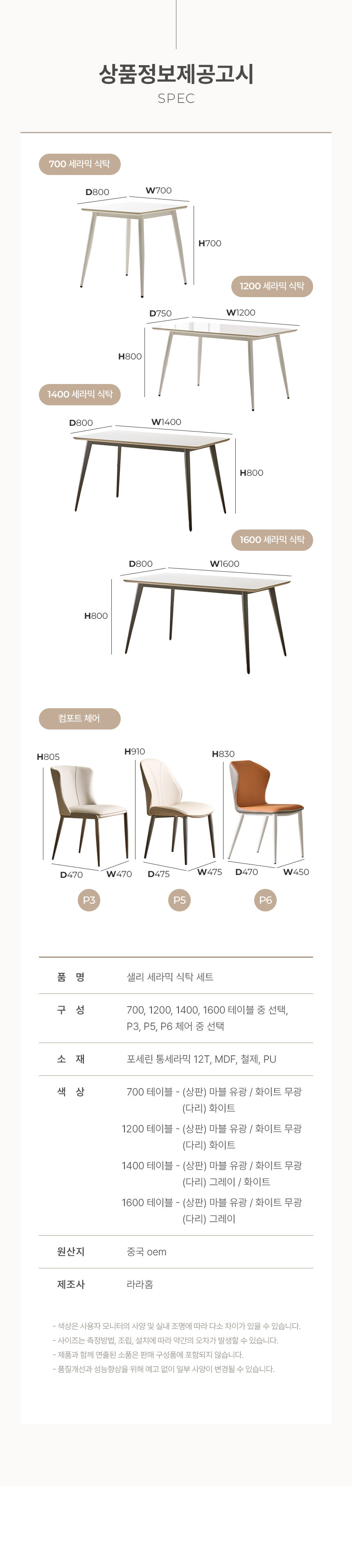 라라홈 샐리 세라믹 양면 2인용 700 식탁세트 포세린