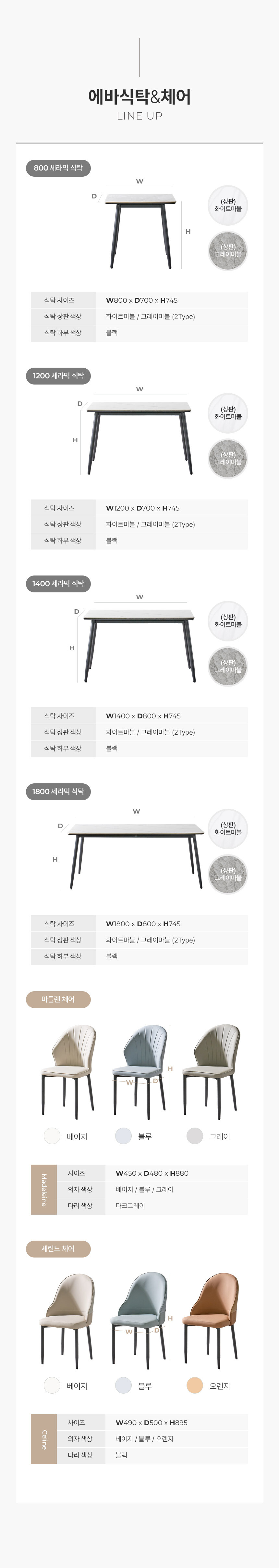800식탁(의자 2EA)_상판: 그레이마블