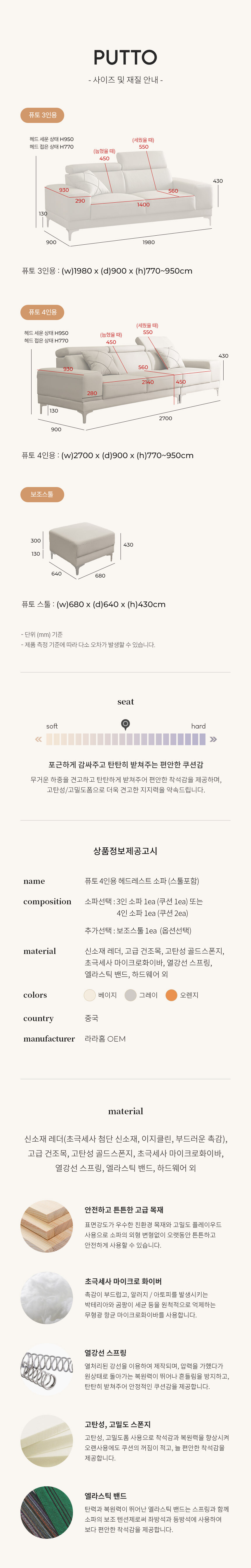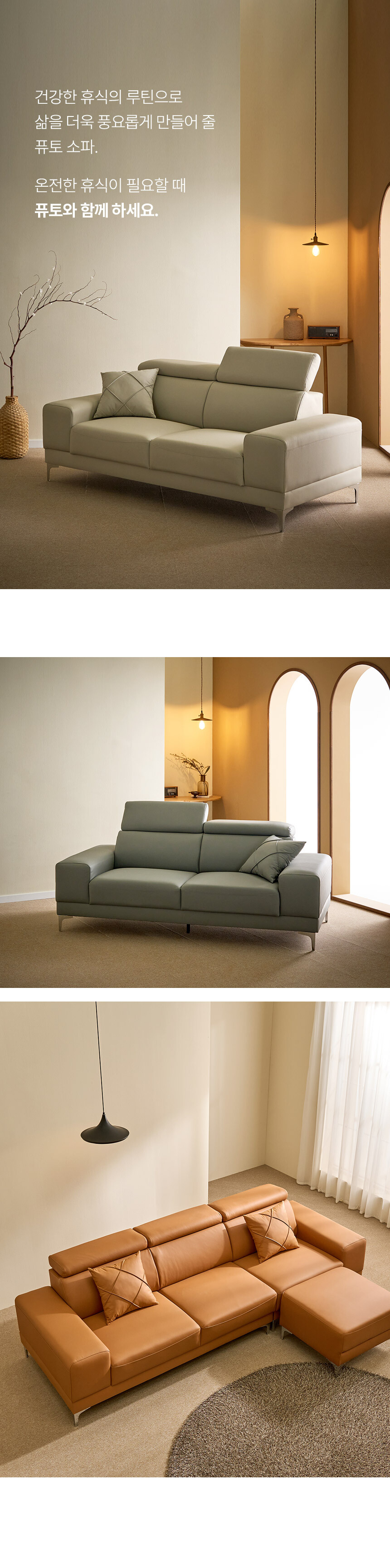 퓨토 가죽 오렌지 베이지 그레이 4인용 3인용 쇼파