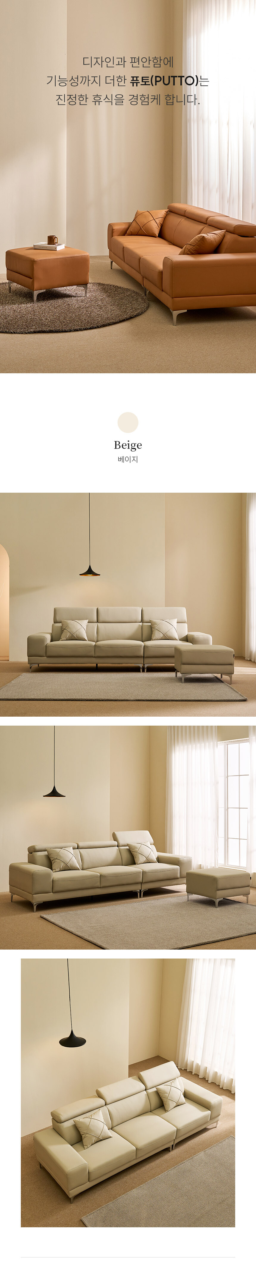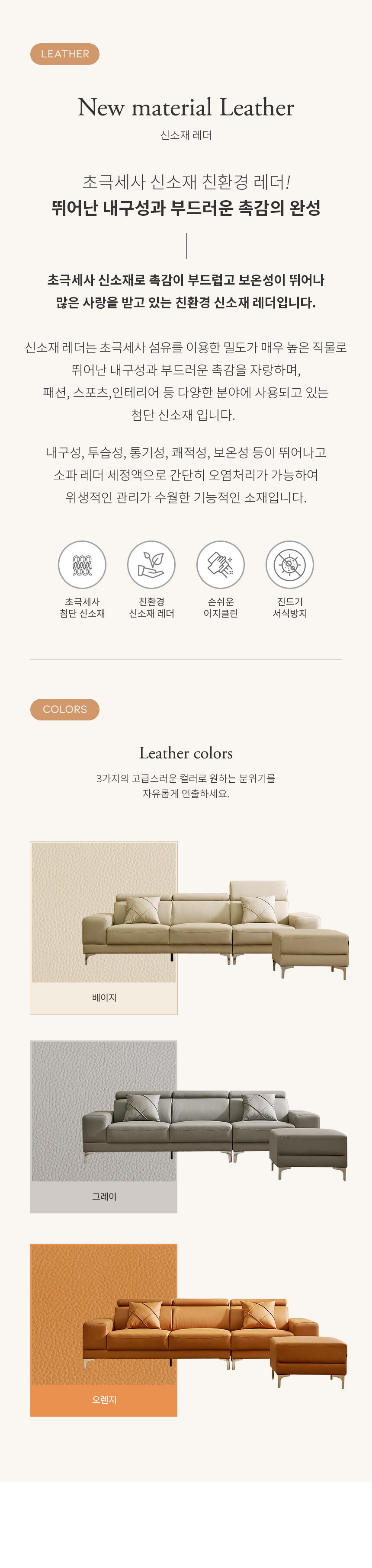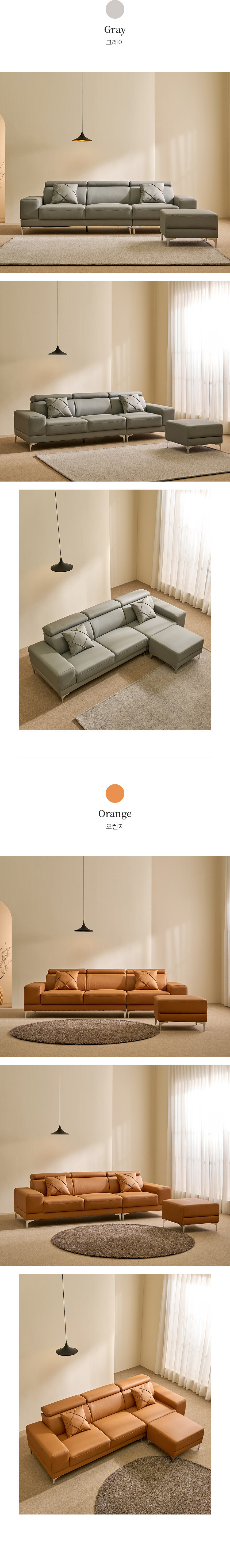 퓨토 가죽 오렌지 베이지 그레이 4인용 쇼파
