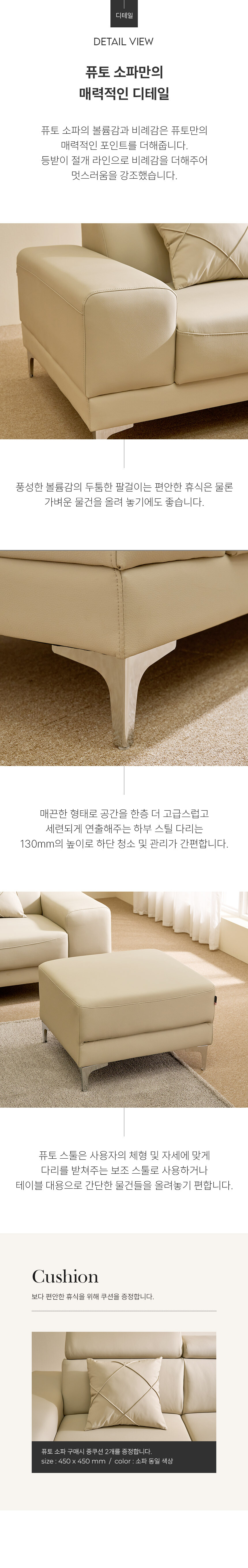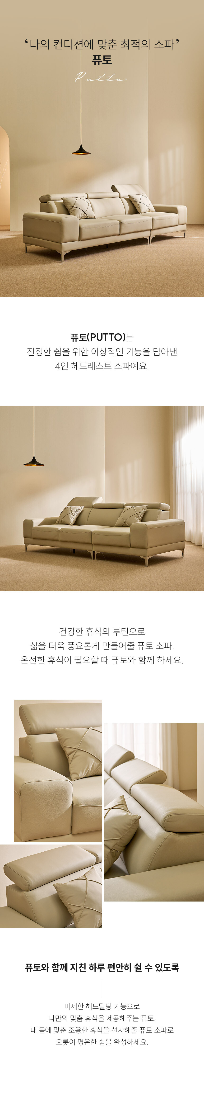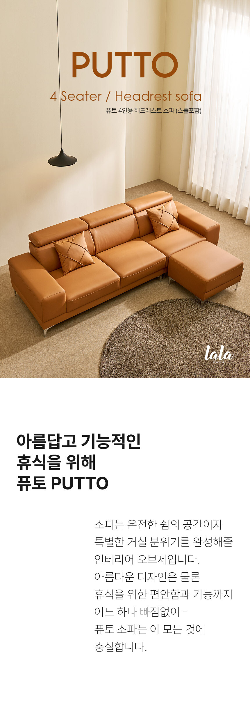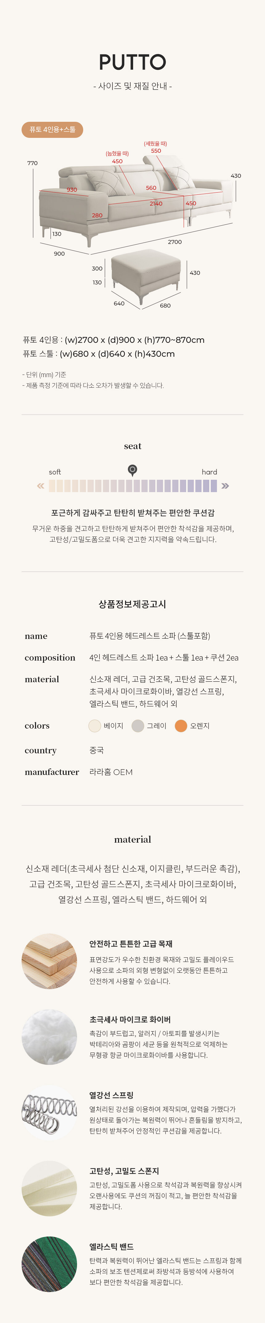 퓨토 가죽 오렌지 베이지 그레이 4인용 쇼파