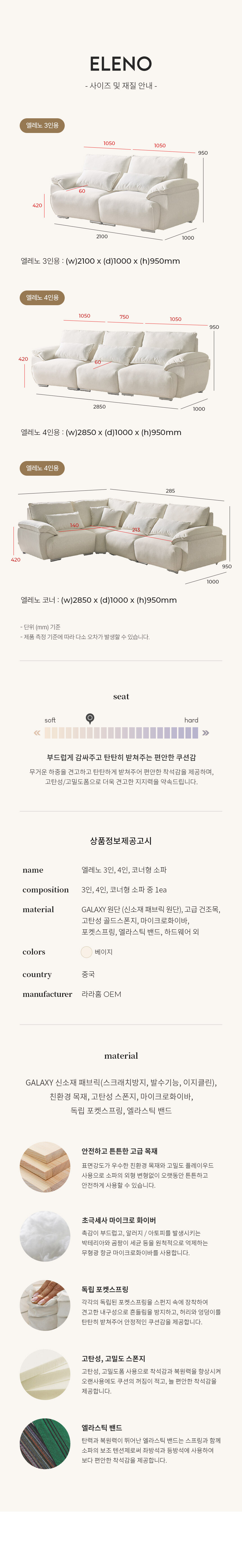 라라홈 엘레노 이지클린 갤럭시원단 패브릭 6인 코너형 소파