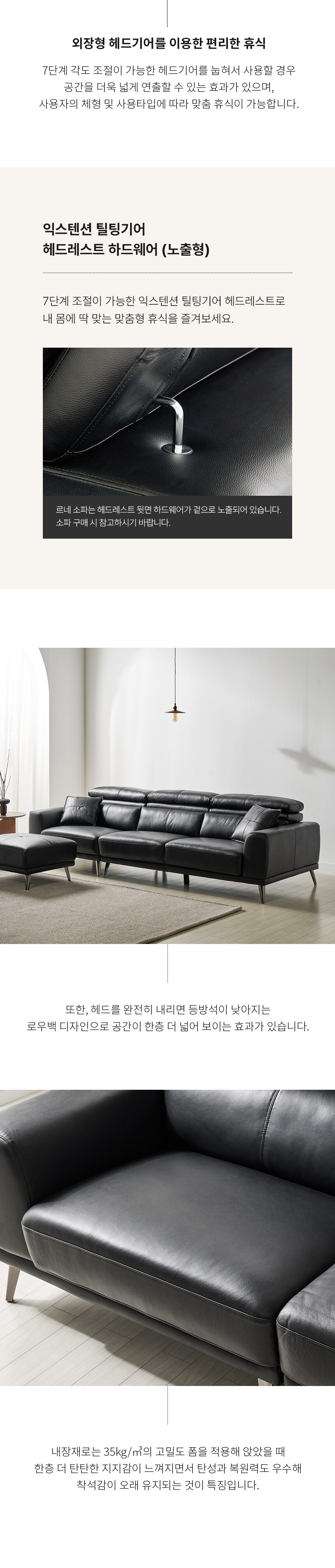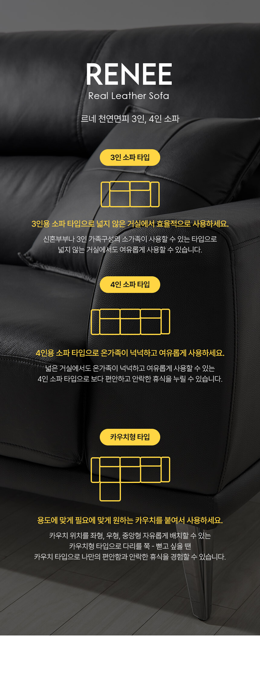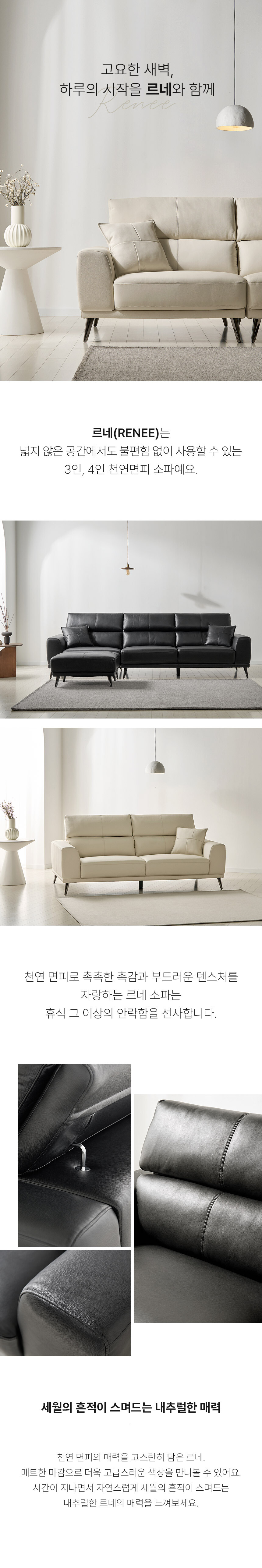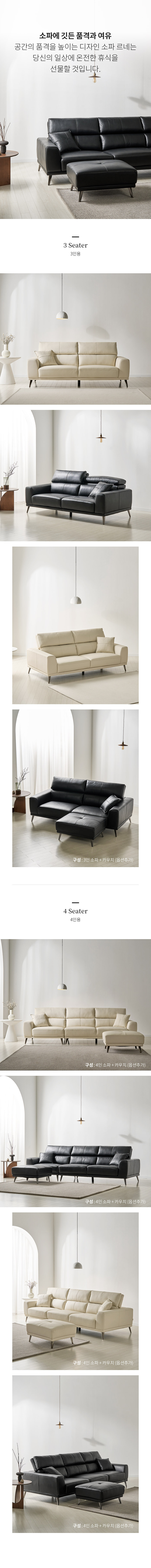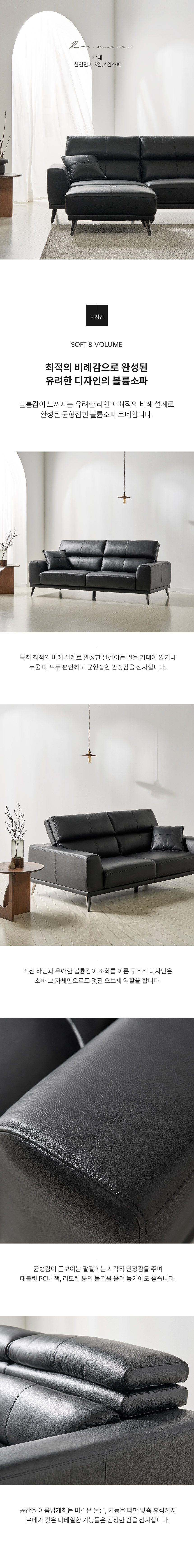 르네 3인 소가죽 블랙 아이보리 천연가죽 탑그레인 소파