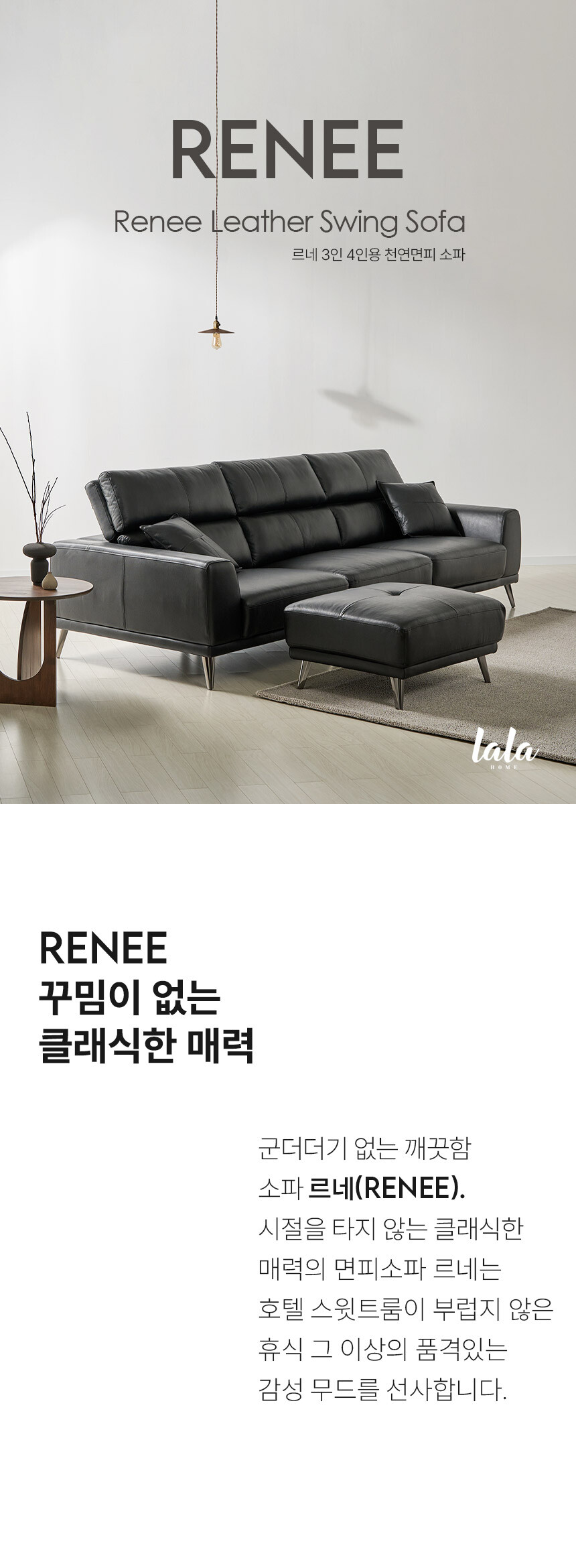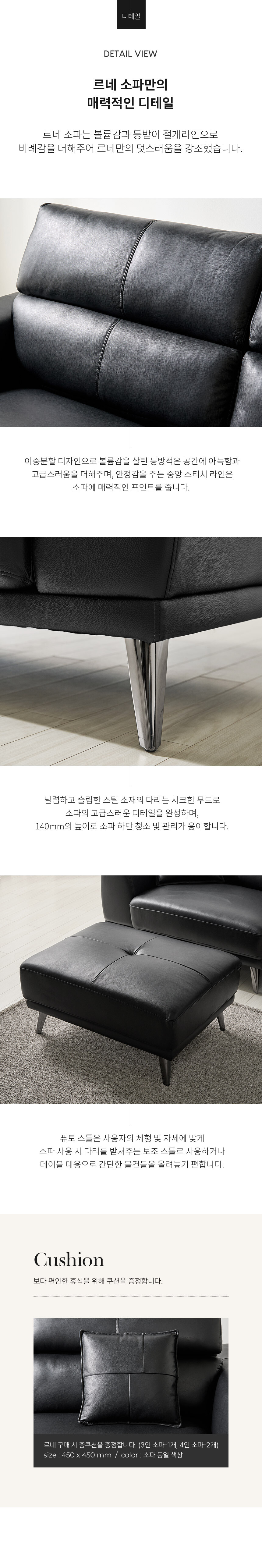 르네 4인용 소가죽 블랙 아이보리 천연가죽 탑그레인 가죽 소파