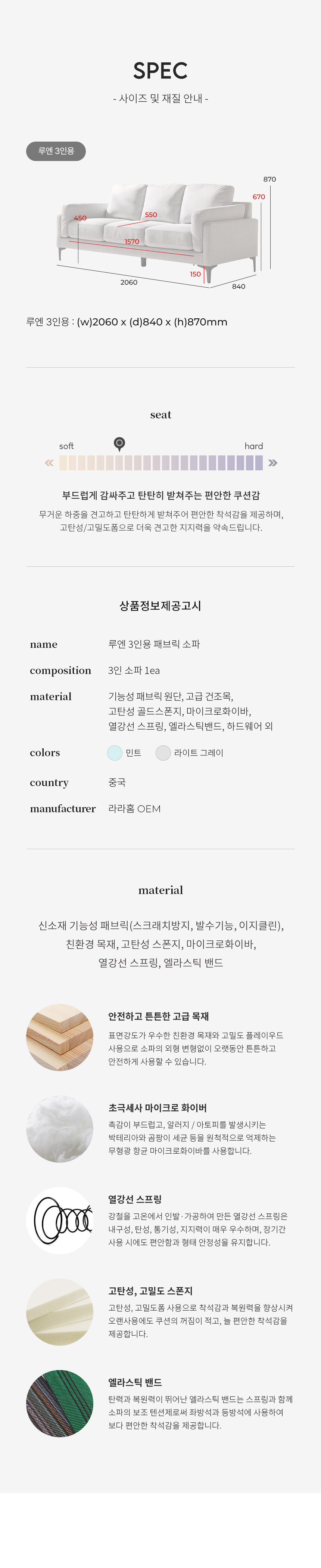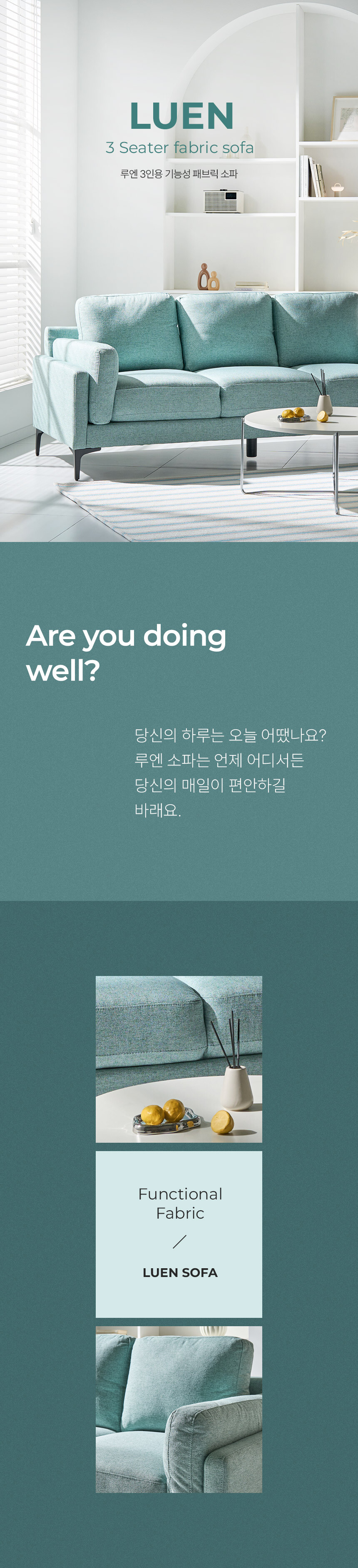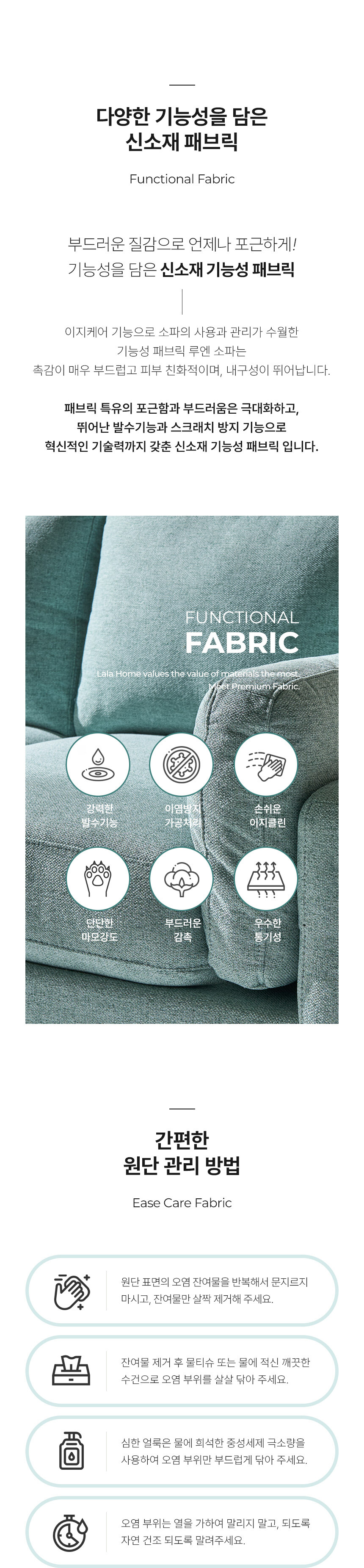 라라홈 루엔 패브릭 3인 소파 이지클린