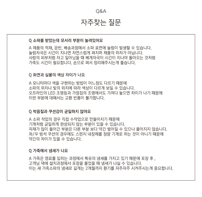 저희 소파는 직접 수작업으로 제작되어 완제품으로 입고되는 부분으로 기계처럼 균일하게 완성되지않는 점