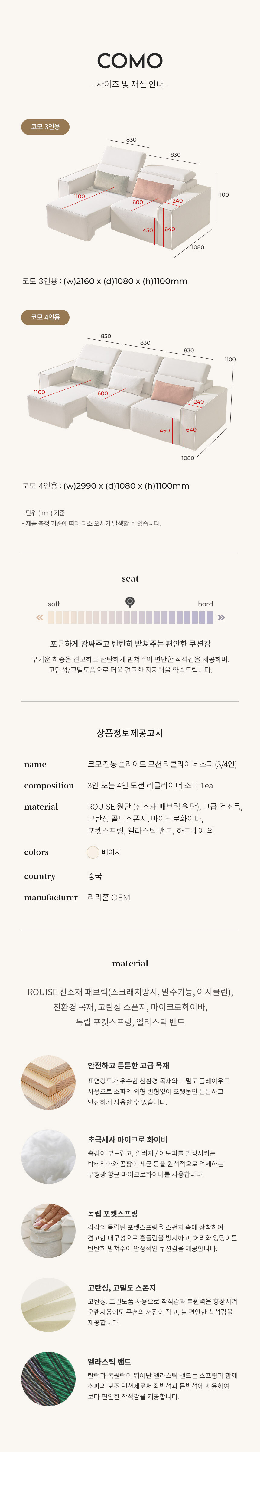 코모 슬라이드 모션 리클라이너 신소재패브릭 4인용 소파