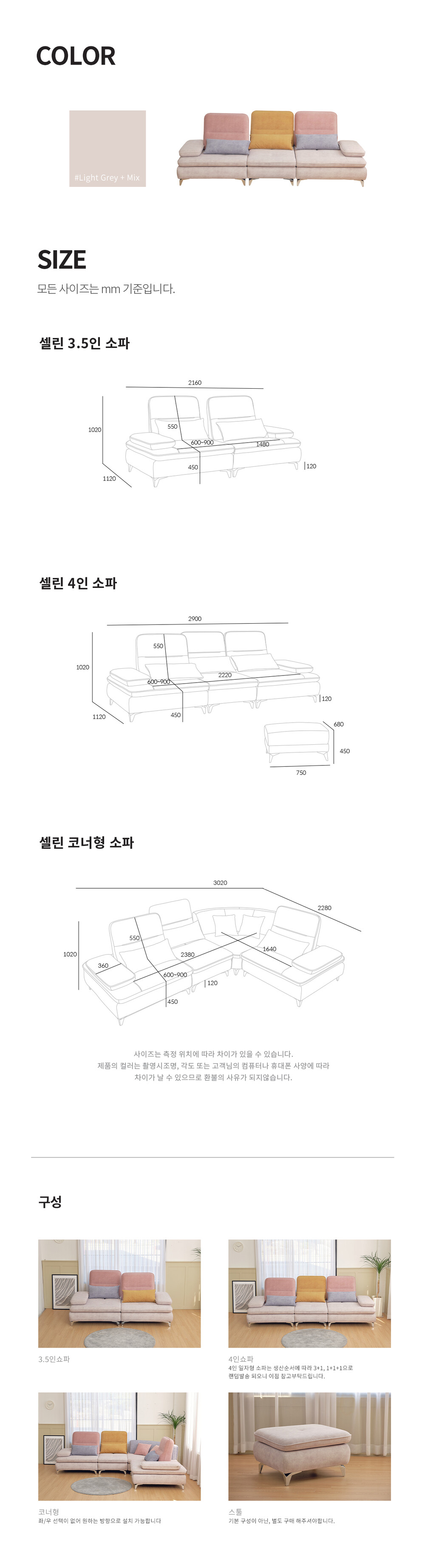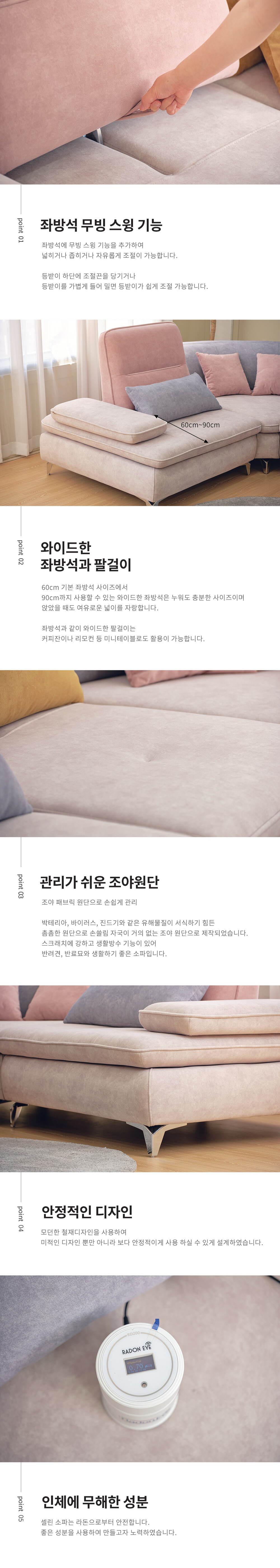 라라홈 셀린 스윙쇼파 4인용 코너형 패브릭 이지클린 조야원단 무빙 투톤