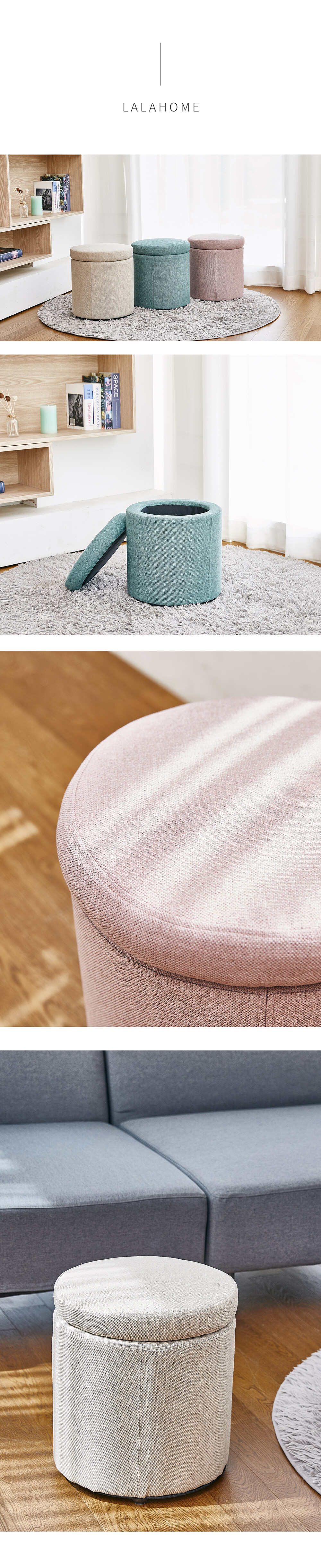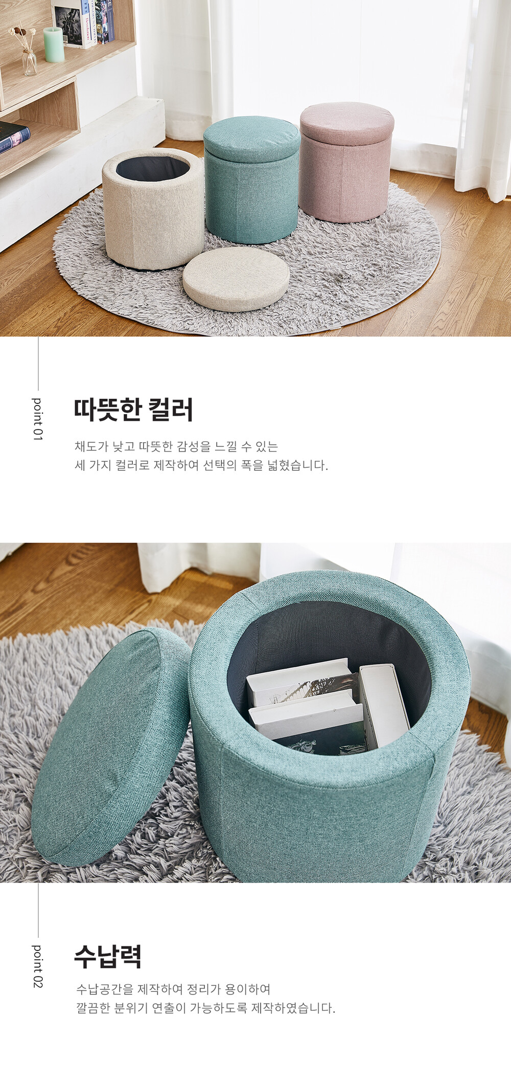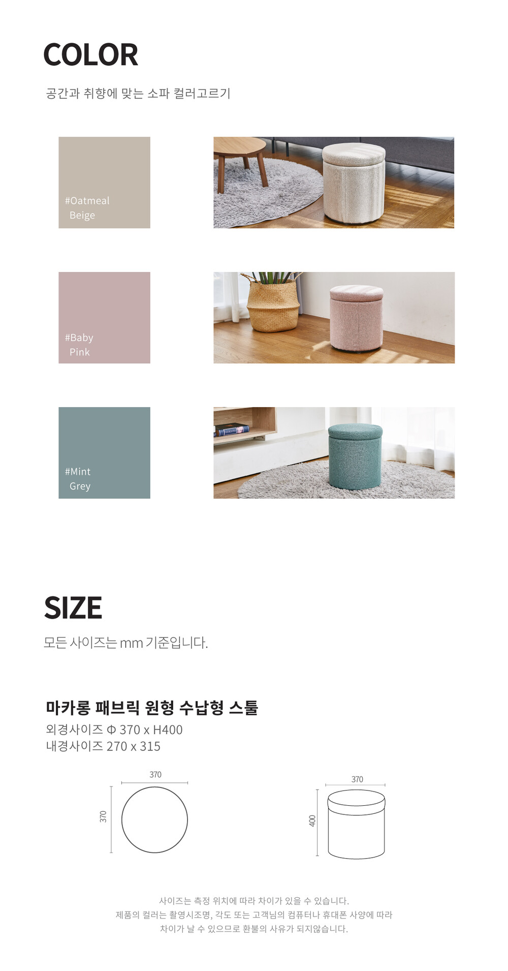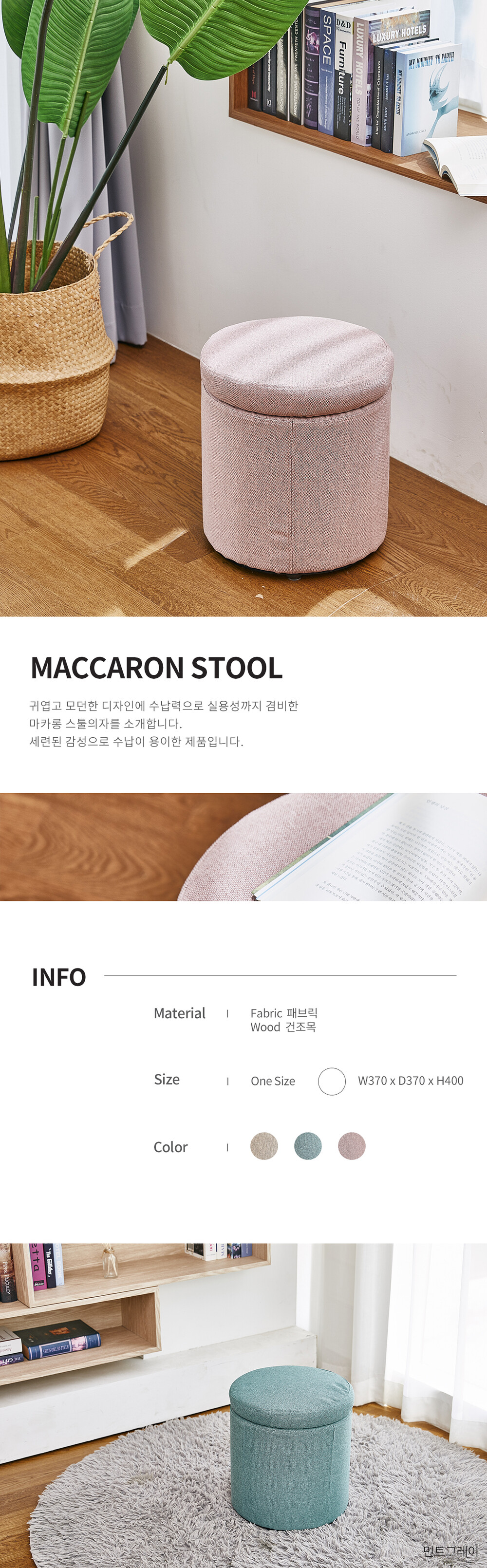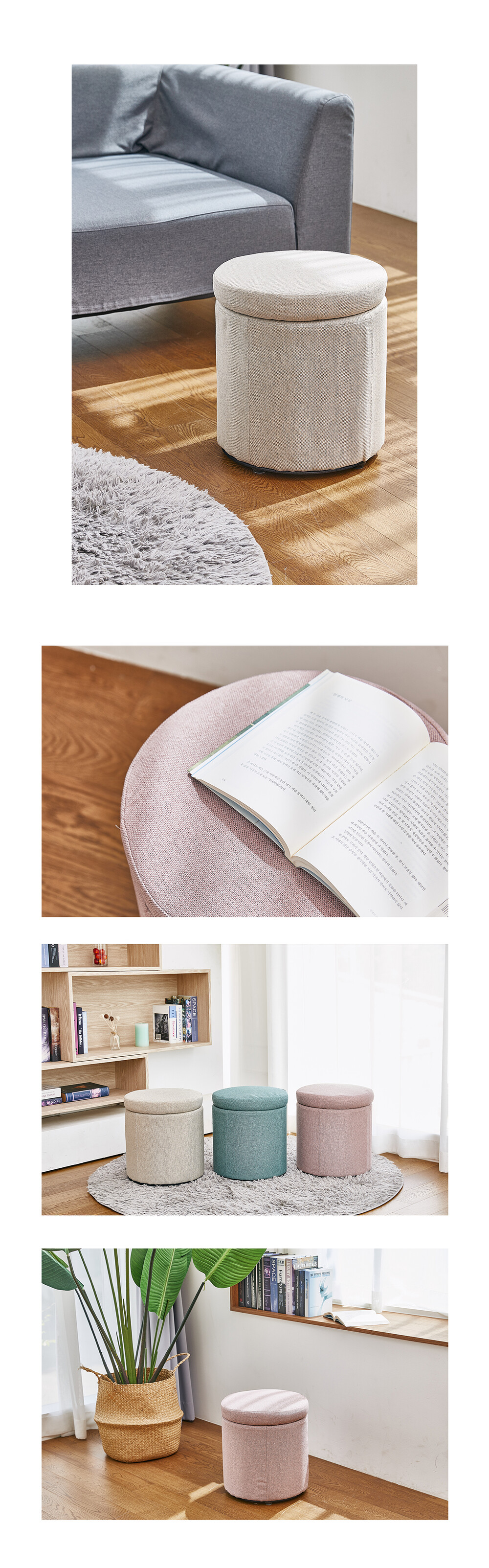 마카롱 패브릭 수납 원형 스툴 화장대 보조의자