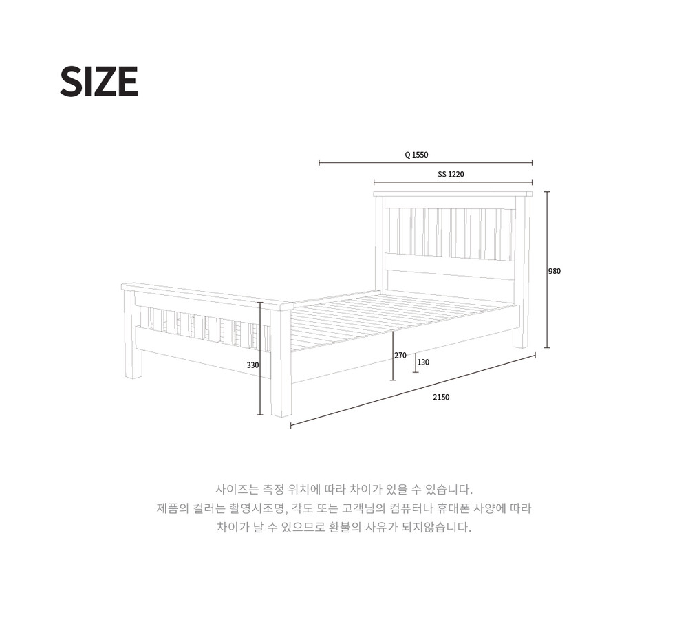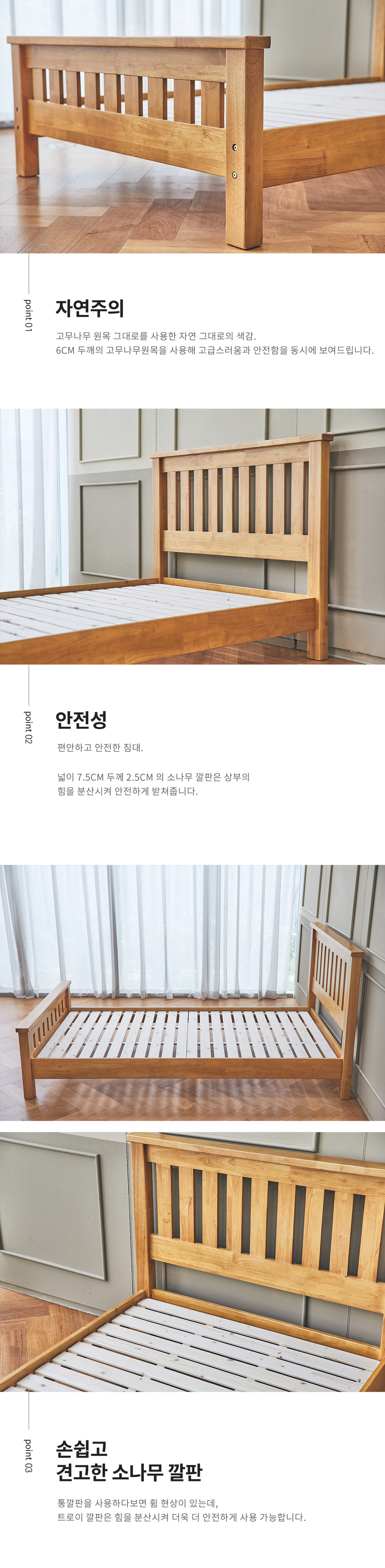 트로이 고무나무 원목 창살 침대 프레임 SS Q (깔판포함)