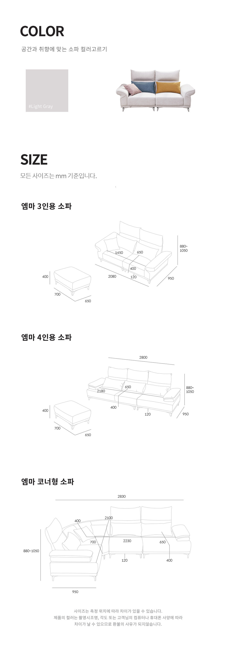엠마 조야 패브릭 코브라 3인 4인 5인 6인 코너형 이지클린 소파