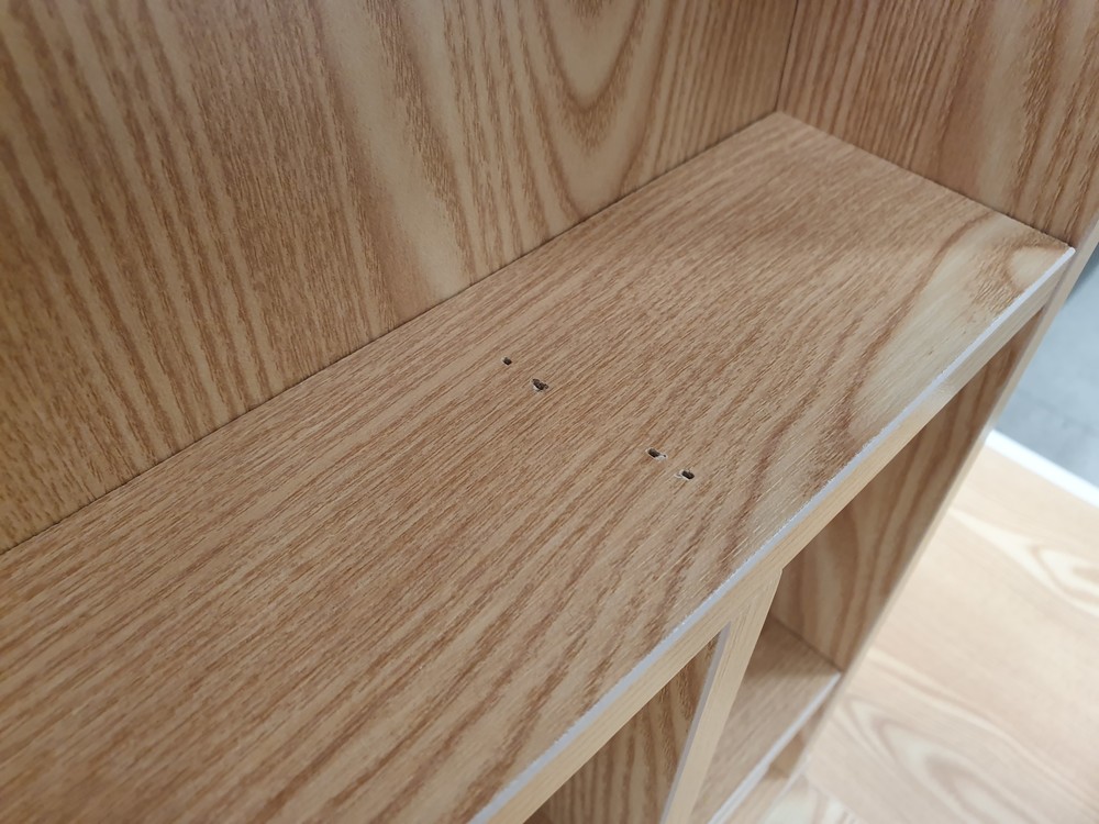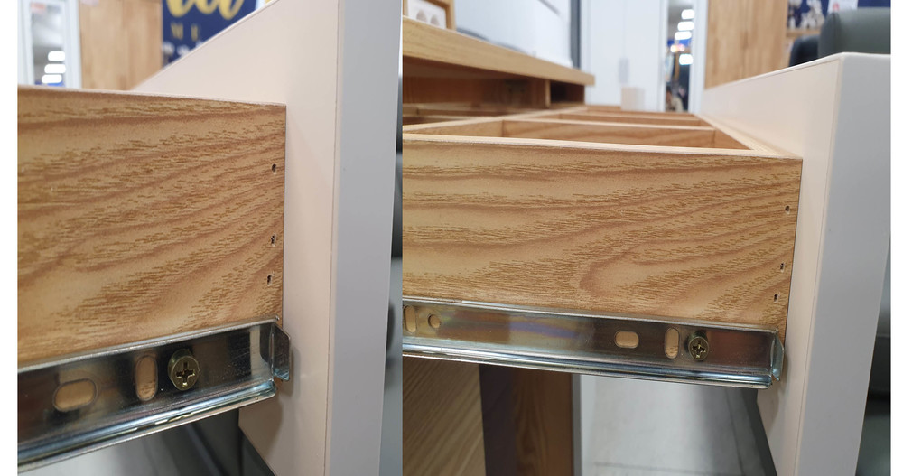 서랍내장재 조립은 피스가 아닌 타카로 제작됩니다. 피스로 고정할경우 목재의 두께에 비하여 피스가 두꺼우면 서랍재가 갈라져 나무터짐현상이 발생함으로 피스가아닌 타카로 작업합니다.