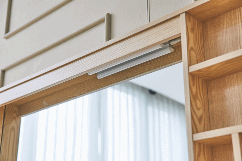 서랍내장재와 거울프레임 조립은 피스가 아닌 타카로 제작됩니다. 피스로 고정할경우 목재의 두께에 비하여 피스가 두꺼우면 서랍재와 프레임이 갈라져 나무터짐현상이 발생함으로 피스가아닌 타카로 작업합니다.