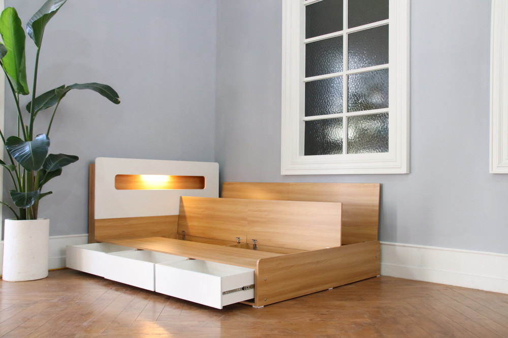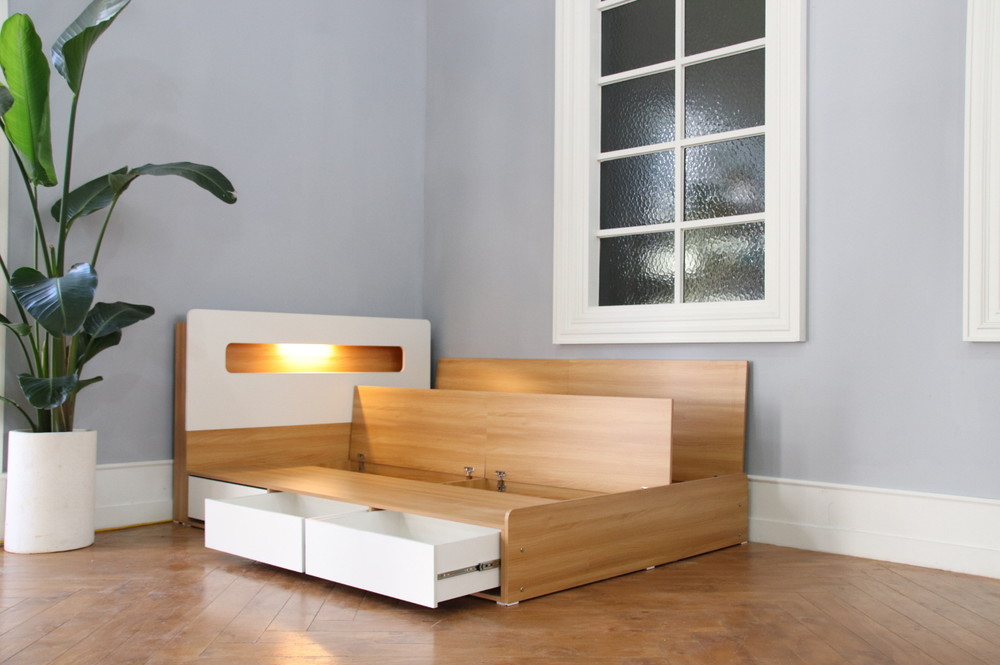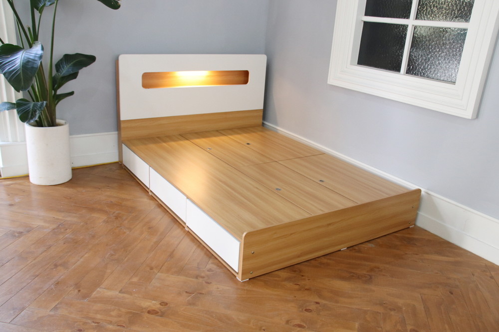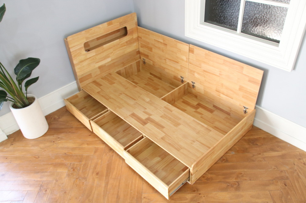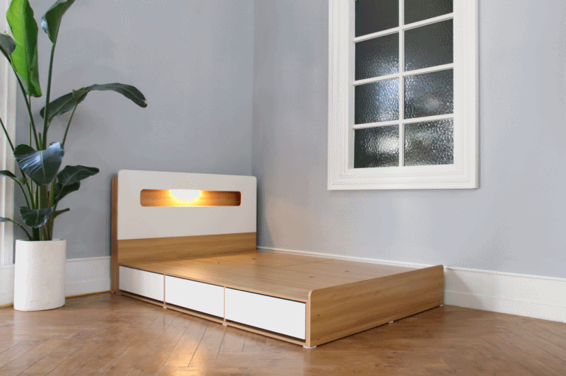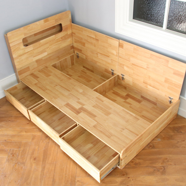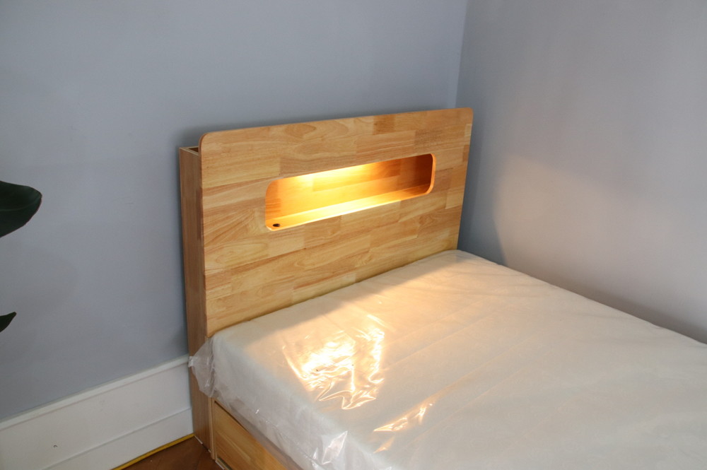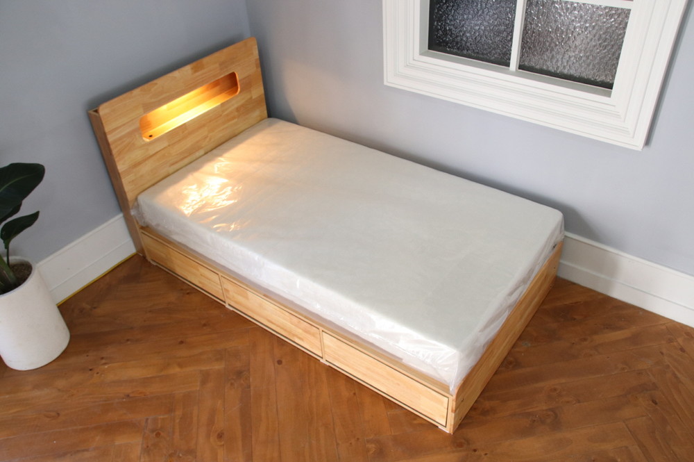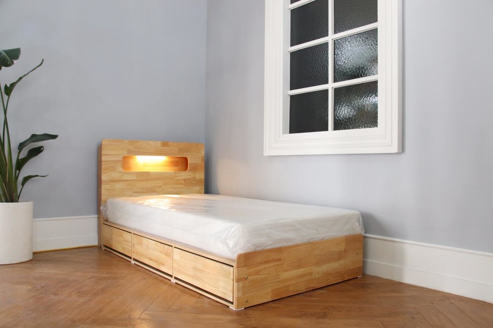 라이트 LED 수납 서랍형 고무나무 원목침대 SS Q