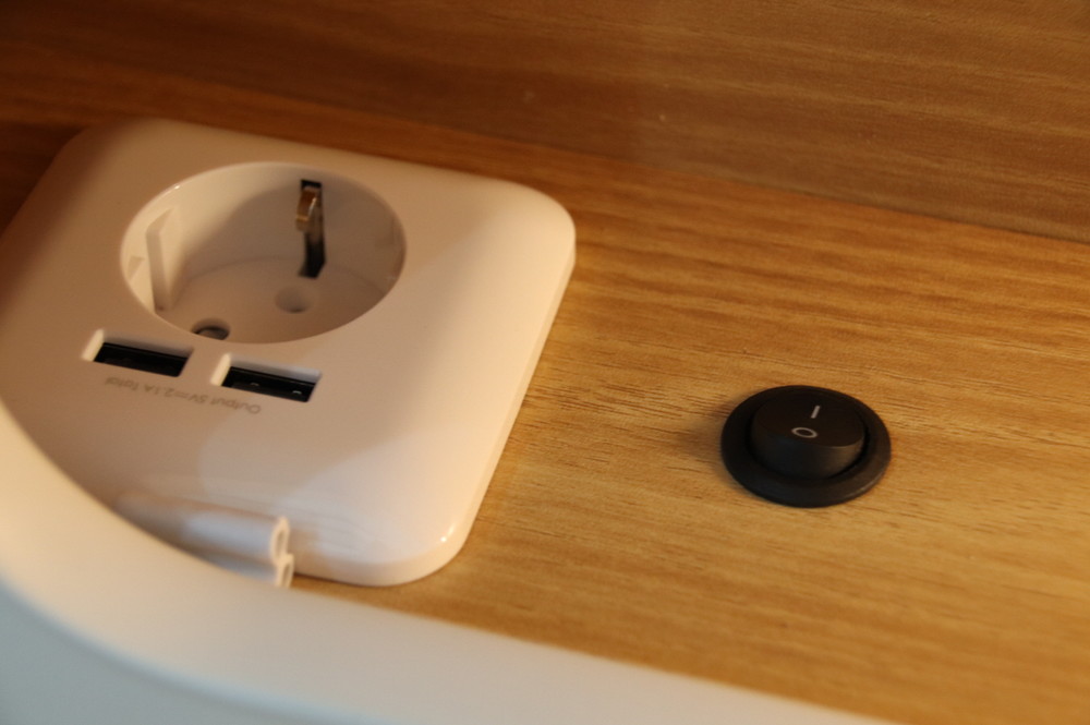 헤드 안쪽에는 콘센트와 usb포트가 내장되어있어