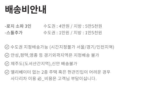 * 엘리베이터가 없는 2층이상은 2만원, 5층이상은 3만원의 추가비용이 발생됩니다.