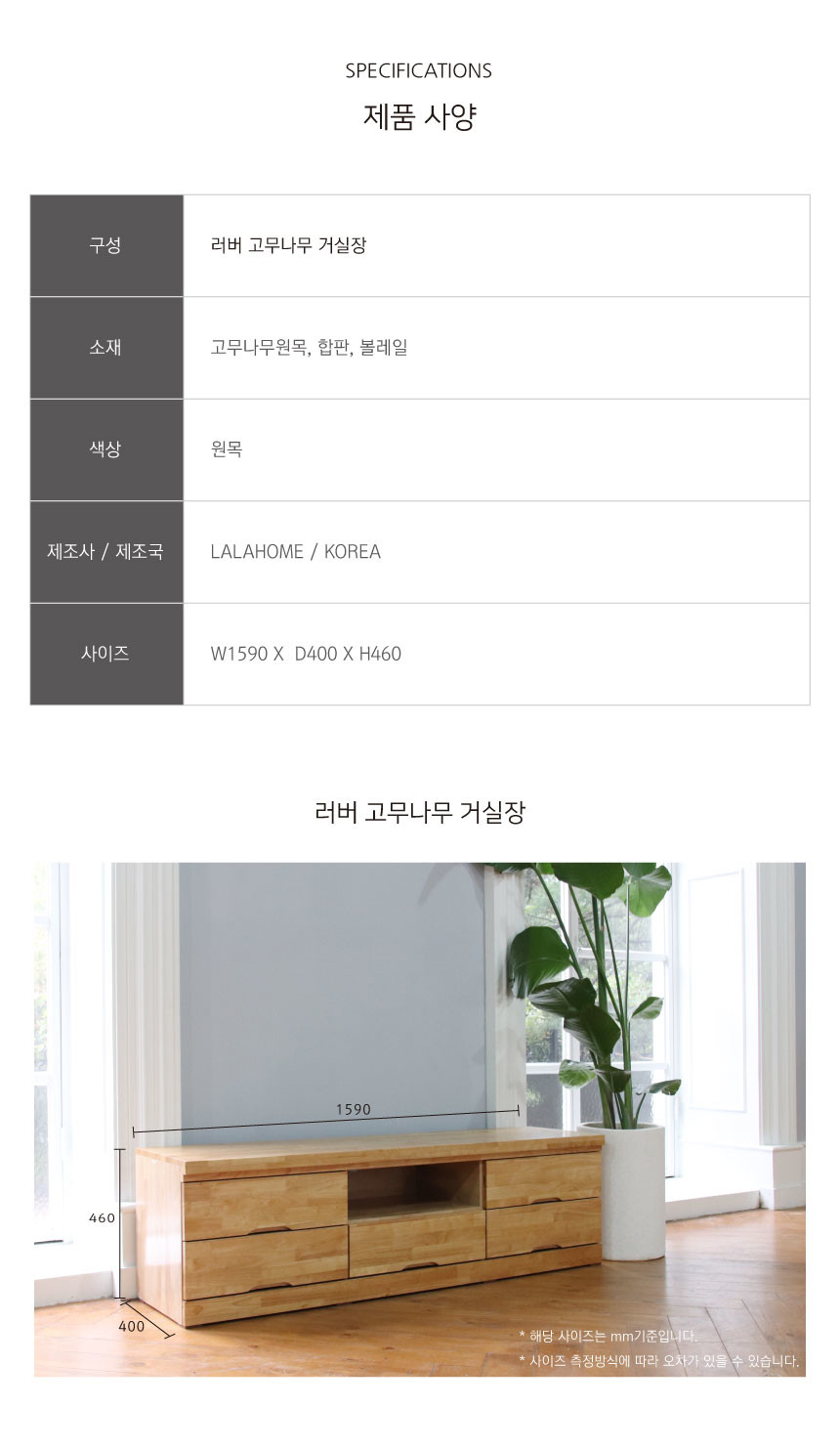 || 러버 고무나무 원목 거실장
