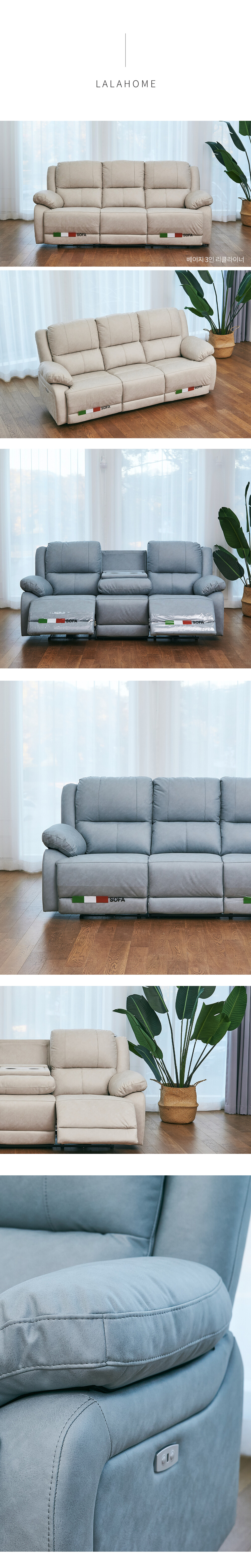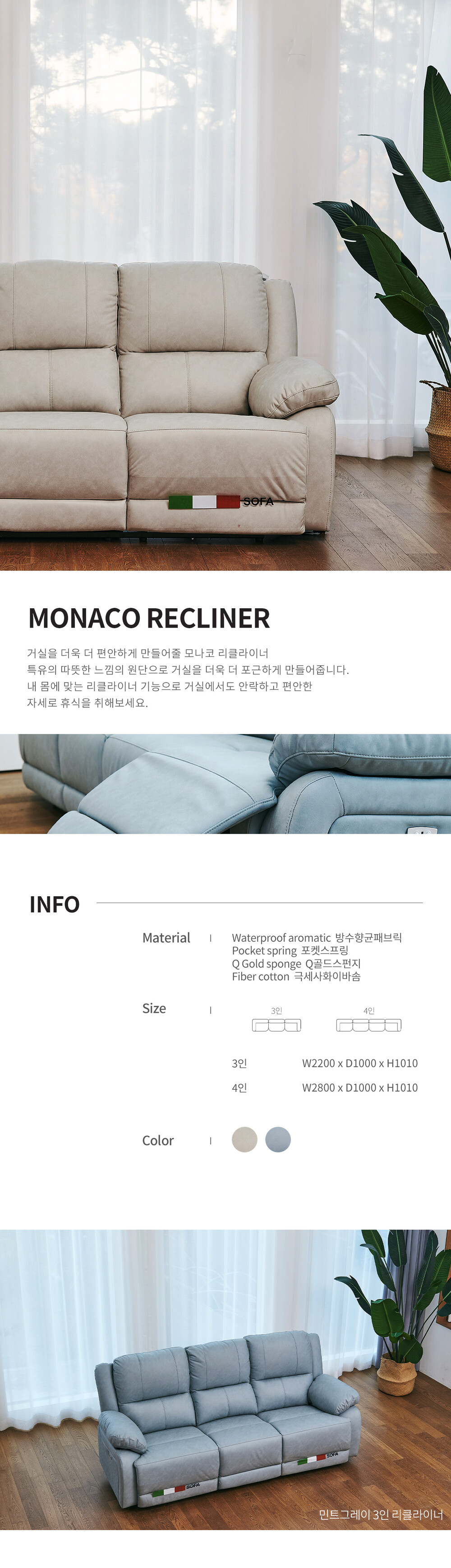 모나코 항균 네오 패브릭 이지클린 아쿠아텍스 3인 리클라이너 소파