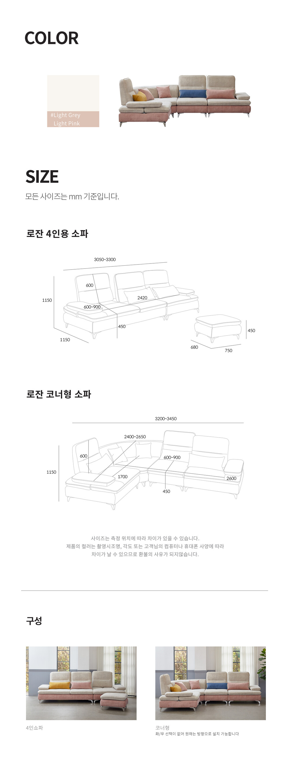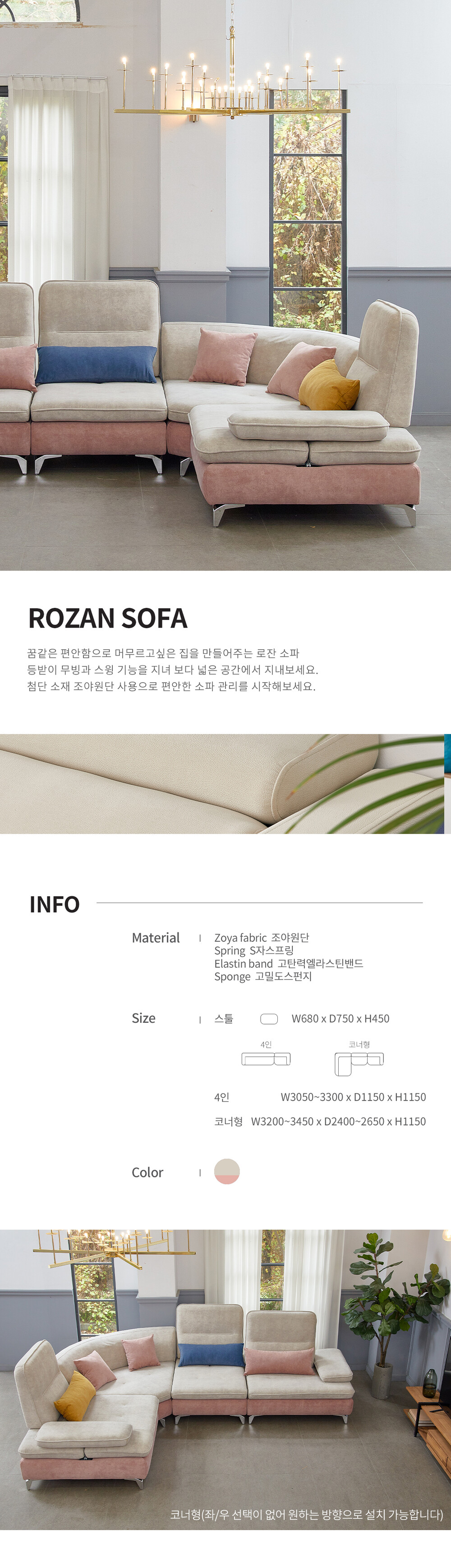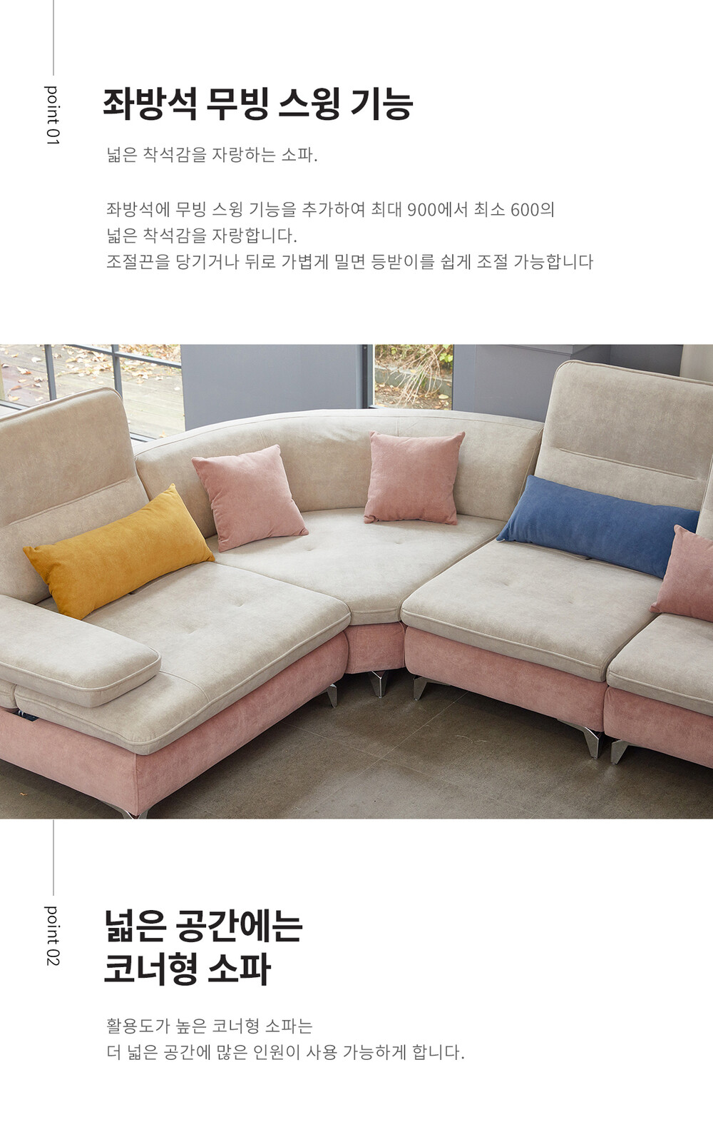 로잔 등받이 스윙 무빙 코너형 쇼파 패브릭 4인용 6인용 모듈 아쿠아 이지클린 신소재 조야원단