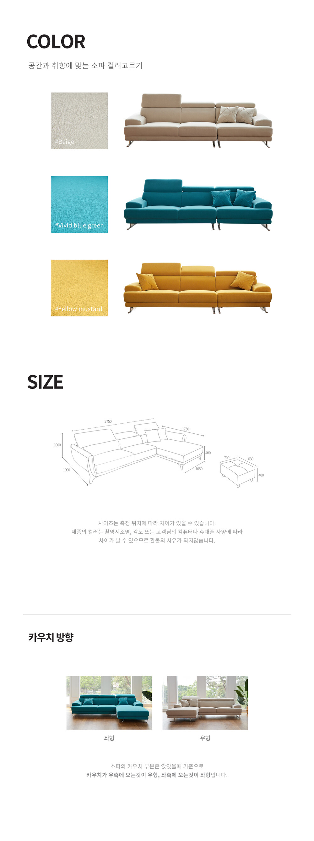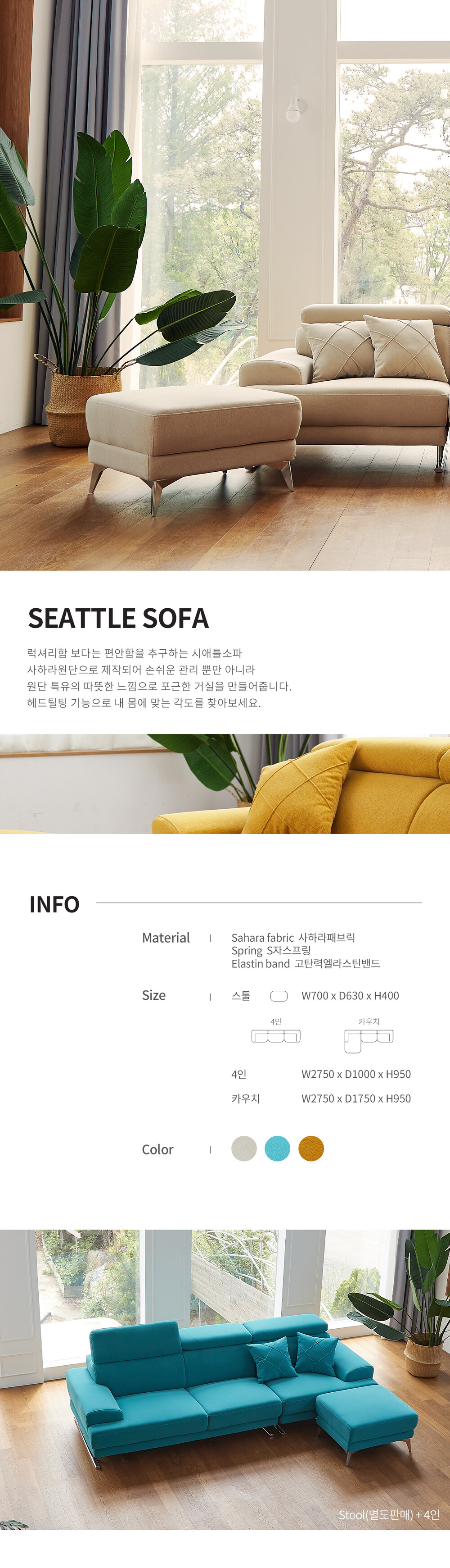 시애틀 패브릭 쇼파 사하라 4인용 이지클린 스툴 카우치형