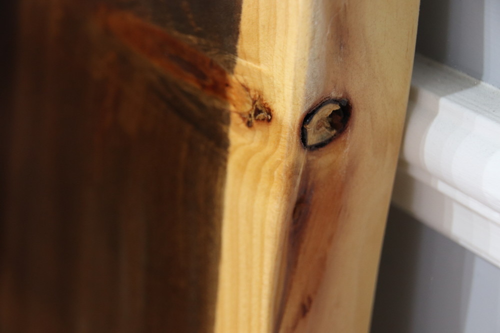 위의 사진과 같은 옹이는 나뭇가지의 그루터기나 가지가 자란 자리이며, 불량은 아닙니다.