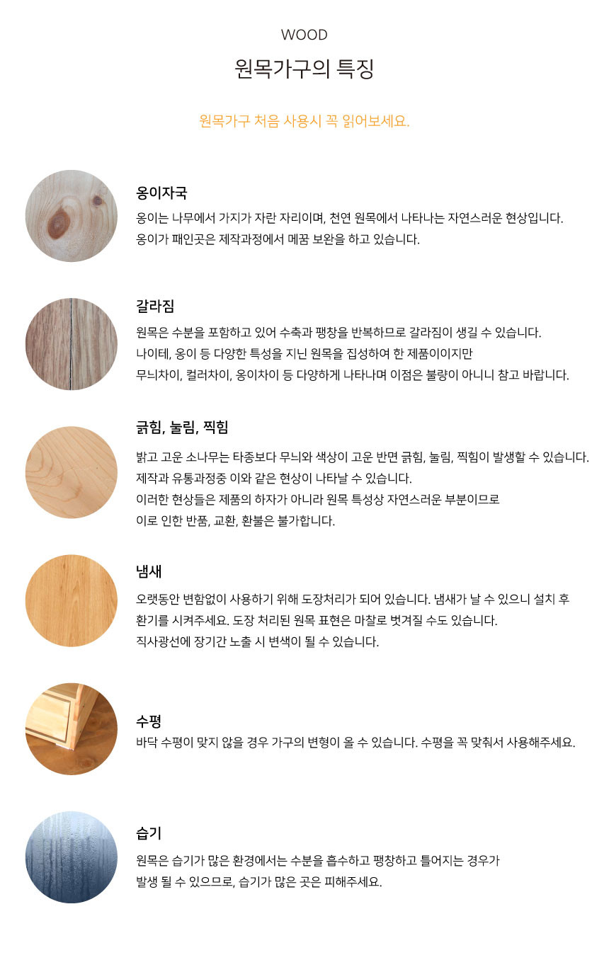 ※ 옹이와 나무결무늬는 각 제품마다 모두 다릅니다. 동일할수가 없습니다.