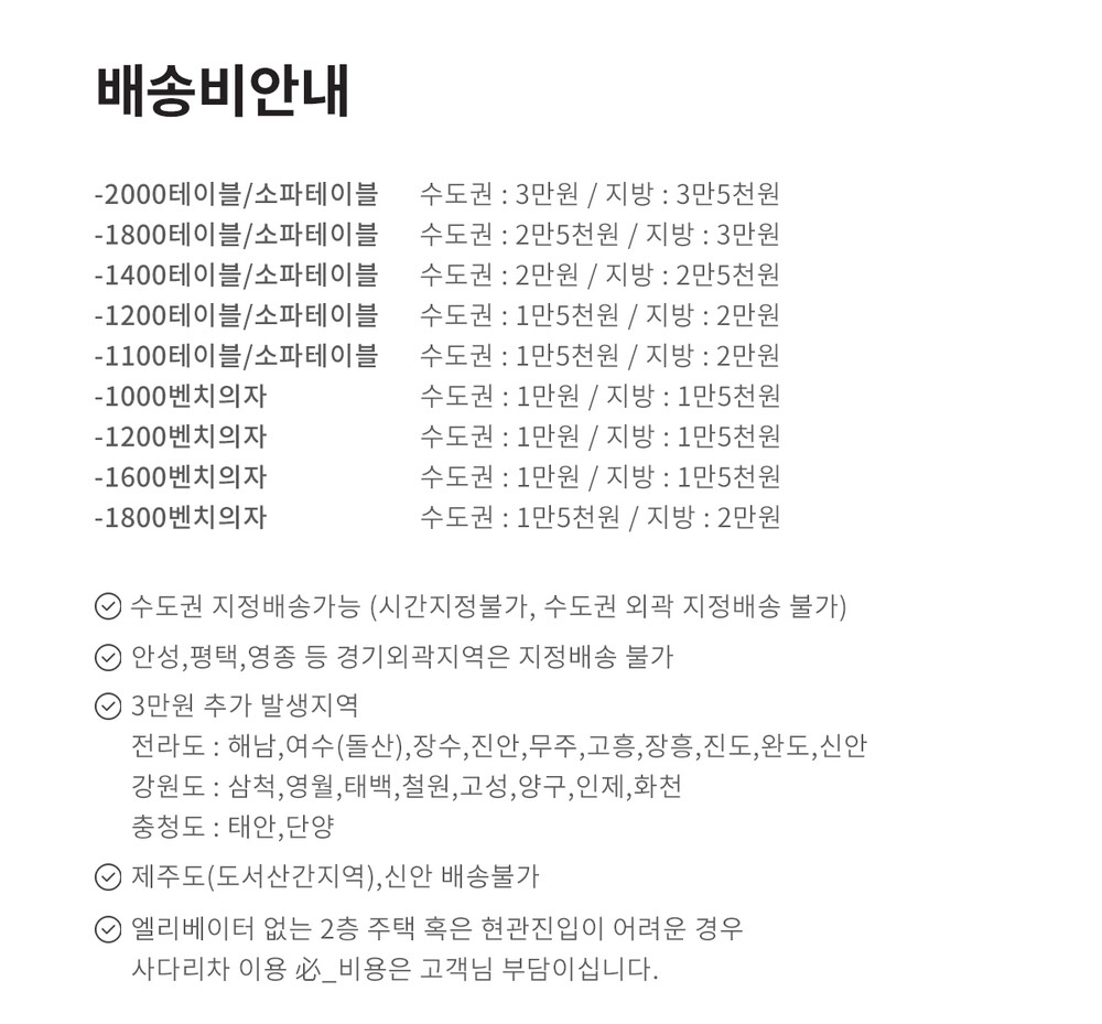 ※ 테이블과 셋트 구매시 기사님 배송으로 배송비는 동일하게 적용됩니다.