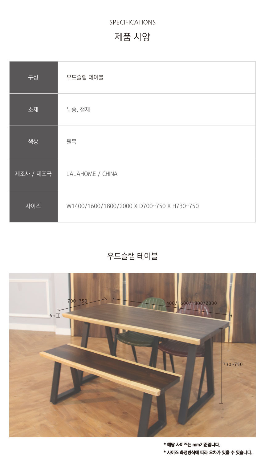 우드슬랩 2000 / 1800 / 1400 / 1200 / 1100 테이블